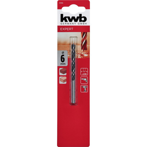 kwb Houtspiraalboren -- Houtspiraalboren, CV-staal, spaanloos gevormd, dubbele spiraal, voor een stabiele en rechte uitloop, kleur zwart, blank geslepen spiralen, met centreerpunt en schoudersnijder, voor precieze en scheurvrije boringen, cilindrische schacht, industriële kwaliteit, voor zacht- en hardhout.
