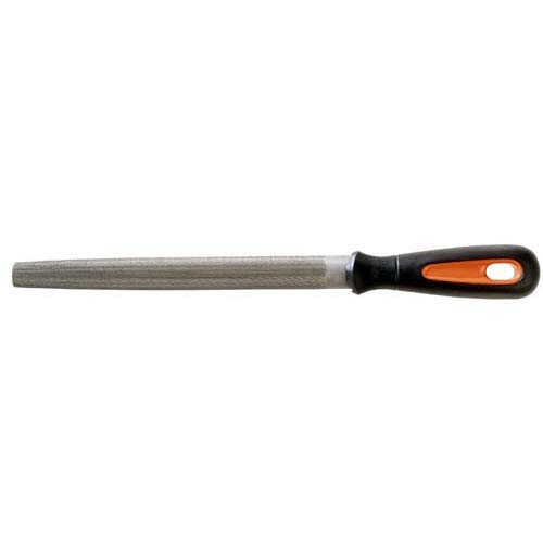 Chroom-Vanadiumstaal, naar de punt taps toelopend, hoge verspaningscapaciteit, dubbel gekapt. Voor het vijlen van holle en vlakke oppervlakken en grote gaten, geschikt voor ontbramen. greep van harde polypropyleenkern, bekleed met rubber, biedt een comfortabele antislip grip.