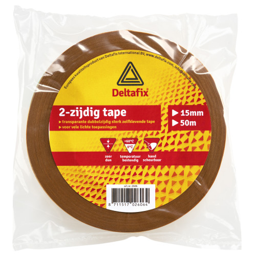 2-ZIJDIG TAPE LOS TRANSP. 50 M 15 MM