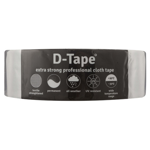 D-Tape is professionele reparatietape van de beste kwaliteit. Deze betrouwbare krachtpatser beschermt, dicht af, houdt vast en blijft zonder problemen presteren. Zelfs onder de zwaarste omstandigheden. Deze veelzijdige tape mag in geen enkele gereedschapskist ontbreken.Deze permanente tape is opgebouwd uit een kleeflaag, een laag textiel, een polyetheen film en een release coating. De tape is in verschillende kleuren beschikbaar.Technische specificaties:- mesh/dichtheid 70- kleeflaag van natuurlijk rubber- 0,3 mm totale dikte- 1,1 kg/25 mm afpelkracht - 2,0 kg/50mm afwikkelkracht- 14 kg/25mm trekkracht- optimale hechting na minimaal 60 minuten-warmtebestendig (-35° C tot 80°C)