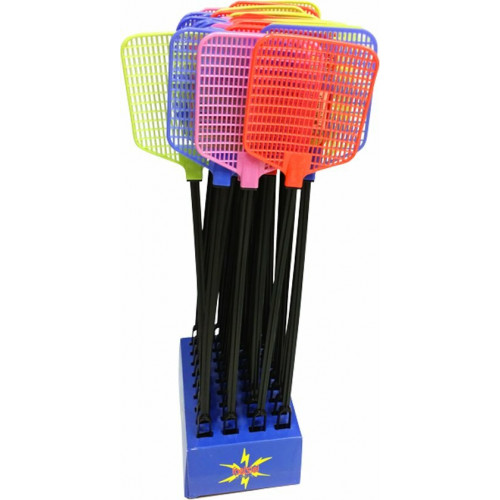 Plastic vliegenmepper van het merk Foetsie, geleverd in verschillende kleuren. Een display bevat 36 vliegenmeppers.